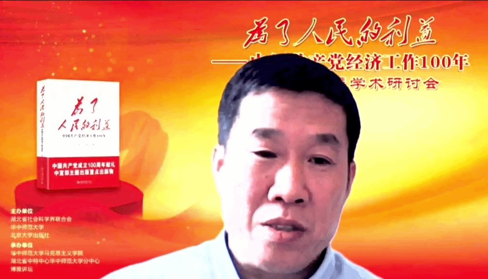 学术研讨会环节由华中师范大学马克思主义学院党委书记孙永祥主持,与会专家学者围绕“为了人民的利益”的主题,探讨了中国共产党以人民的利益为根本出发点,百年来经济工作的历史以及经济工作各个阶段的经济理论与经济思想、发展战略与策略、政策与方针、决策方法、工作组织方法、工作成就、历史经验以及对马克思主义经济理论的发展与贡献等方面的内容。