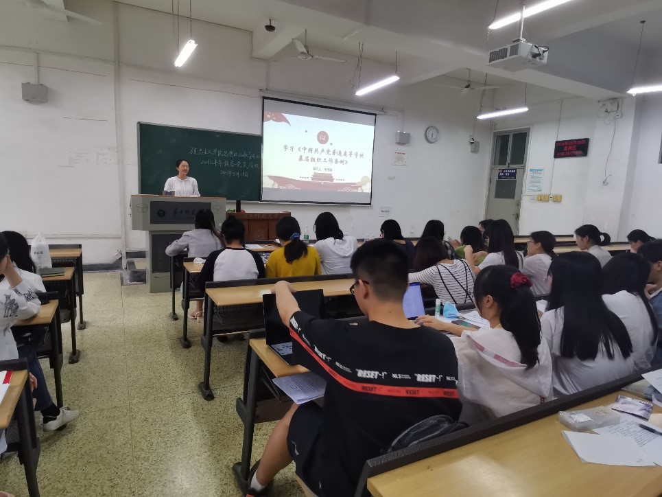 在学习环节,许冬雪同志领学了习近平总书记在清华大学考察时的重要讲话,她主要围绕如何建设中国特色一流大学、青年成长成才与立志明德、教师学高为师身正为范三个方面分享了自己的学习体会,她强调当代青年应积极学习和贯彻习总书记重要讲话精神,把握大势,敢于担当,善于作为。李丹蕾同志领学了《中国共产党普通高等学校基层组织工作条例》,通过回顾《条例》修订的背景、主要原则、修订内容及其章节,全面阐述了新修订条例对于新时代下高校开展基层党建工作的重要指导意义。