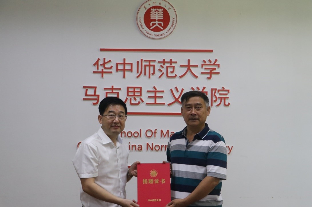 马克思主义学院党委书记孙永祥接受捐赠支票。