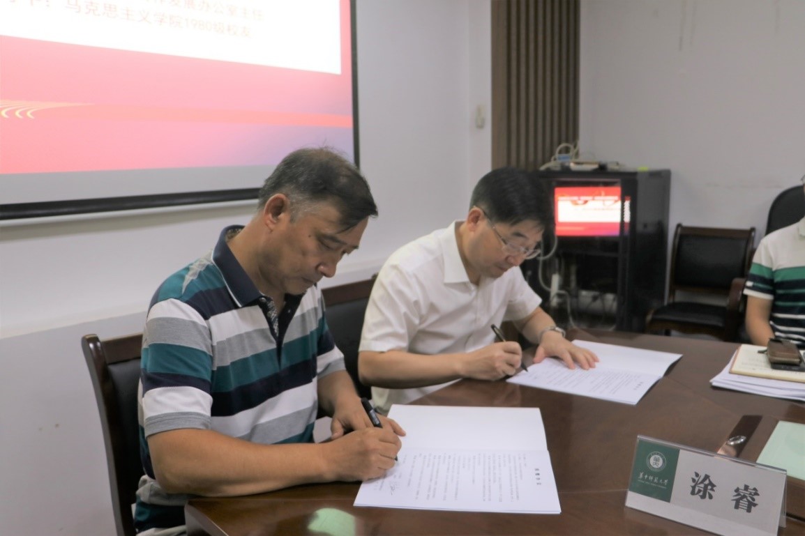 接下来进行捐赠协议签署仪式,由学校校友工作与合作发展办公室主任王志彬与捐赠方刘粵平共同签署捐赠协议。
