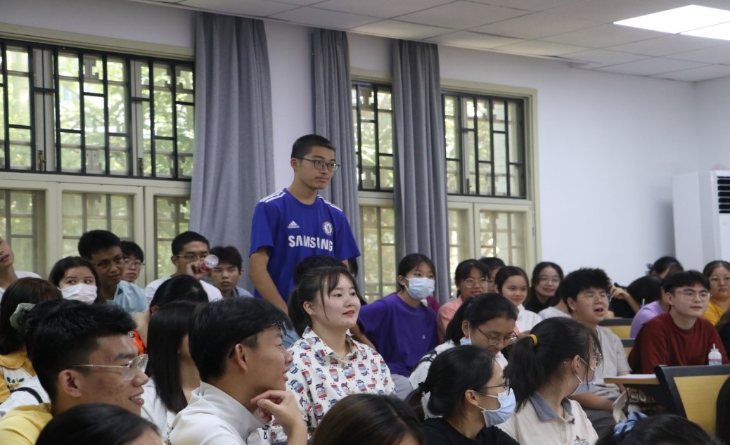 随后,刘粤平校友在马克思主义学院1号楼1101教室面向2021级学生开展专题讲座,2021级本科生辅导员余逸飞和146名学生参加了报告会,马克思主义学院党委书记孙永祥主持报告会。