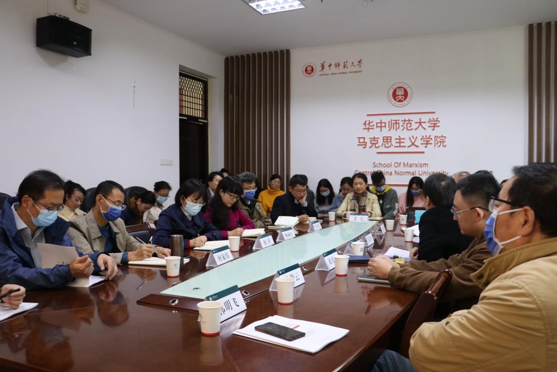 马克思主义学院讯(通讯员 卢静秋 张志庭;摄影 马娟)为切实加强马克思主义学院建设,我院10月21日下午召开“推进21世纪马克思主义研究”座谈会。此次座谈会特别邀请《毛泽东邓小平理论研究》杂志资深主编曹泳鑫、编辑部副主任来庆立出席。座谈会由万美容院长主持,李芳副院长、毛华兵副院长、郭明飞、梅萍、杨丽珍、李哲、何家伟等教授和学院青年教师、和博士研究生代表共三十余人参加座谈。