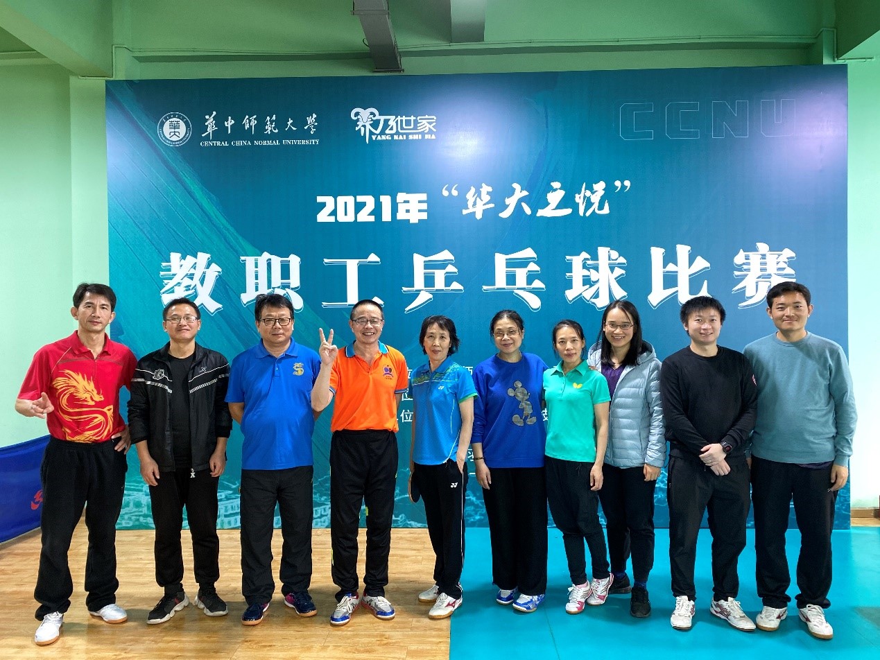 马克思主义学院讯 (通讯员 孟飞)11月12日-13日,华中师范大学2021年“华大之悦”教职工乒乓球比赛在学校乒羽中心举行。我院教职工乒乓球队由谢从高、李敬煊、王潮、蔡丽、殷筱、孟飞、张卫、李哲、白莉莉、李春火、刘莉莎等人组成。大家克服困难,团结协作,在比赛中表现出敢打敢拼的精神,取得了甲组团体第五名的好成绩,圆满完成了保八的既定目标。