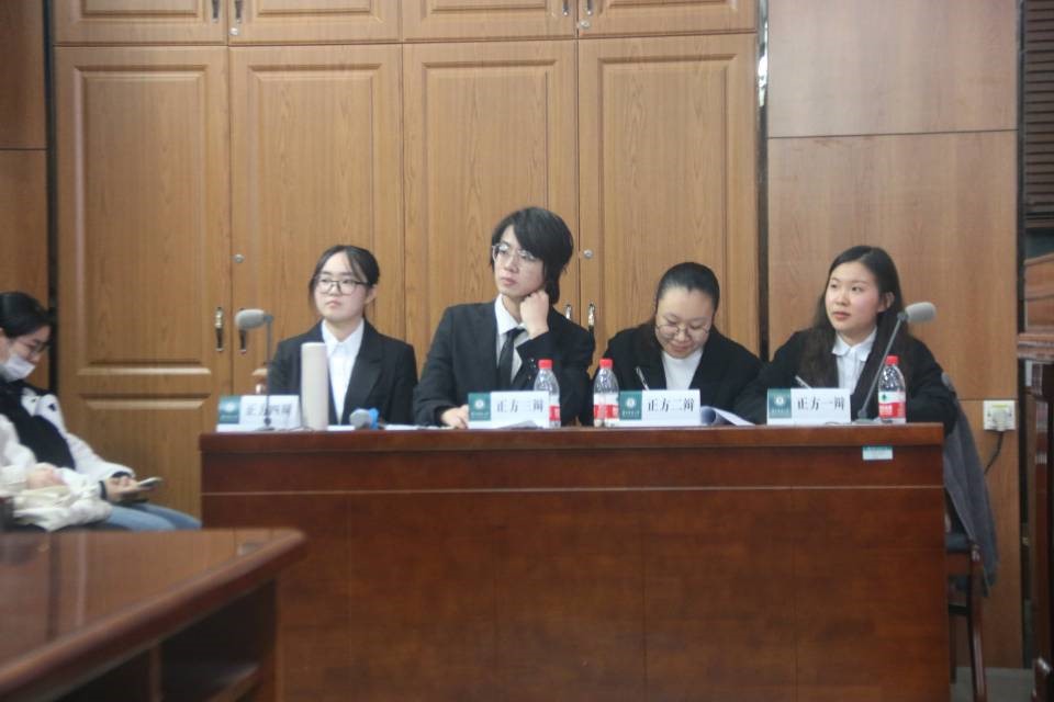 晚上八点,比赛正式打响。本次比赛的辩题为:“碰瓷式维权”应该/不应该被法律保护,由正方马克思主义学院“求真”辩论队对阵反方新闻传播学院辩论队。我院参赛选手为一辩梁滔,二辩黄欣然,三辩陈文强,四辩张翼扬。