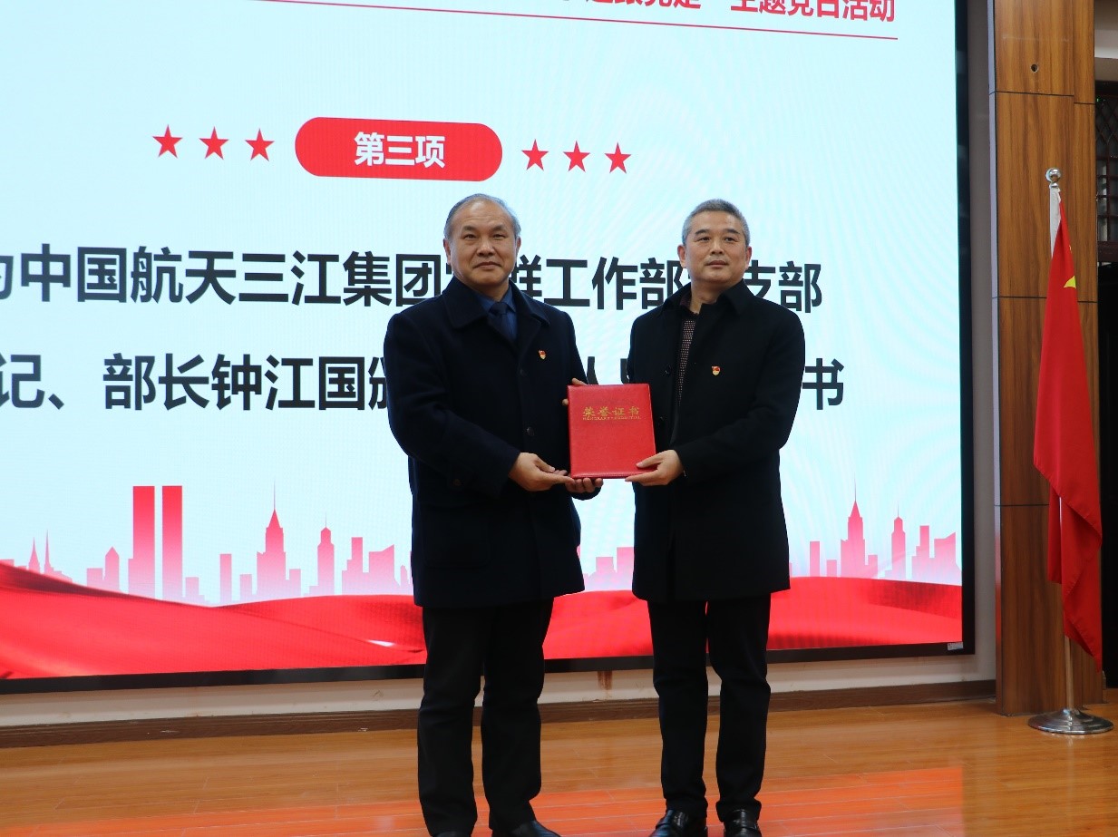 活动伊始,全体与会人员庄严肃立,共同奏唱中华人民共和国国歌。在领誓人马克思主义学院正处职组织员董俊敏的领读下,在场全体党员重温入党誓词,字句铿锵,目光坚定。随后,马克思主义学院院长万美容教授为中国航天三江集团党群工作部党支部书记钟江国颁发“育人导师”聘书。