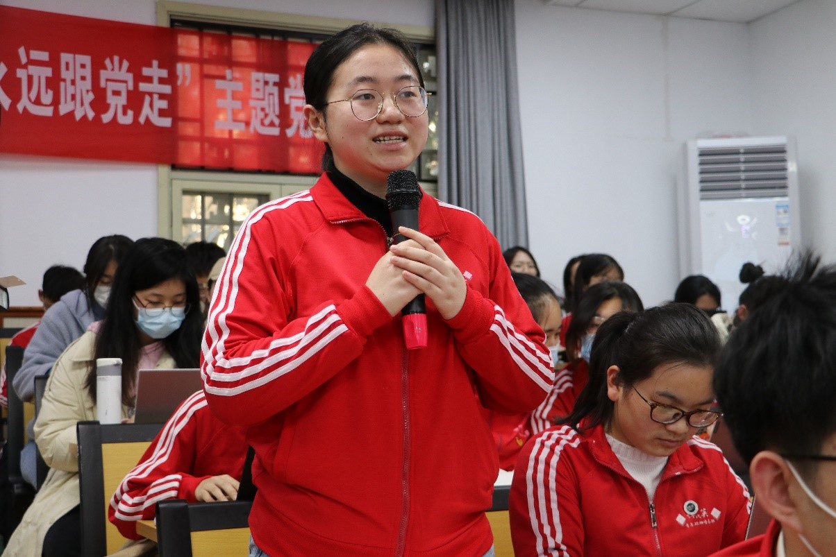 我是一名思想政治教育专业的公费师范生,将来要成为一名政治教师。其实教材中的一些知识,尤其是必修一《中国特色社会主义》,其中有很多我们中国特色社会主义建设的重大理论成果的总结和凝练。可能就会存在着抽象性概括性的理论知识学生无法理解的情况。但通过党史学习教育、主题党日活动、报告会等等,我在其中听到很多生动真实的故事,而这些故事,恰恰可以成为我们思政课真实、感人的鲜活事例。比如在上学期,我们学院举办的“求真讲坛”报告会,我们邀请到许多在平凡的岗位上书写不凡业绩的宣讲人,讲述奋斗真故事、传递红色正能量。又比如这次钟江国书记为我们讲述的航天三江的故事,让我们了解到了航天三江的奋斗历程。历史和人民选择了中国共产党,中国共产党也没有辜负历史和人民的选择。