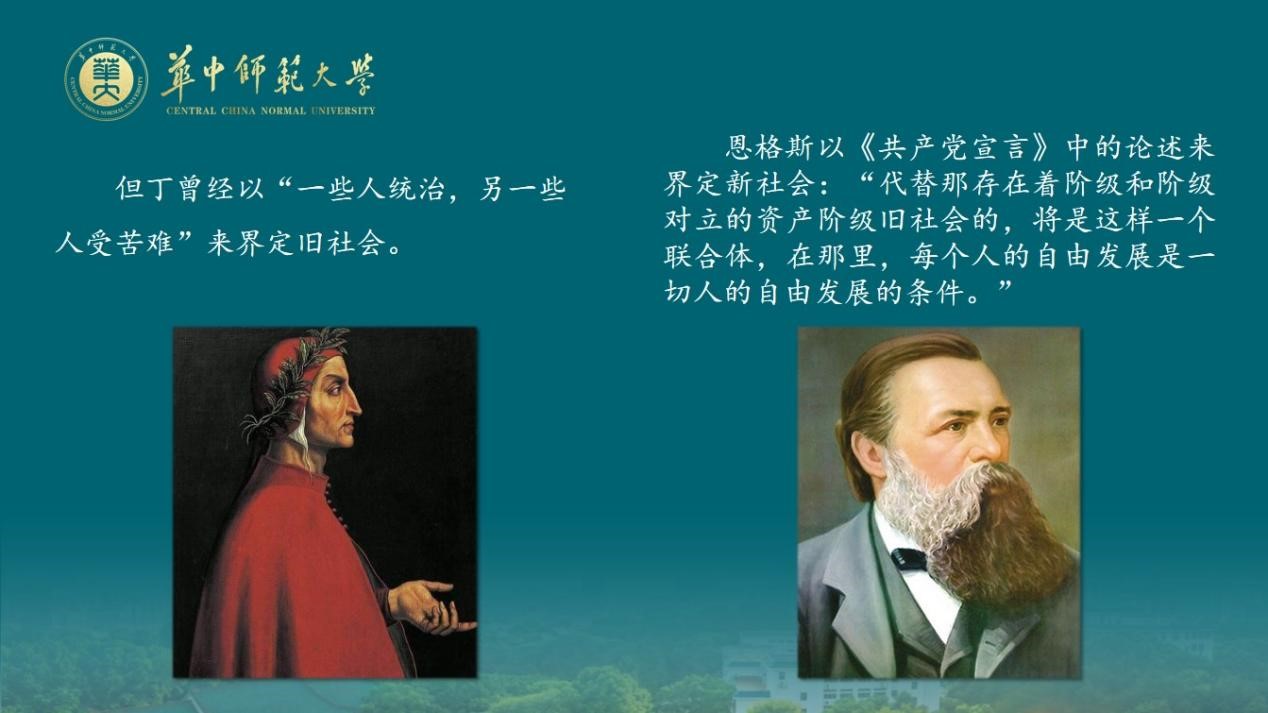 赵凌云书记指出,马克思主义的伟大之处在于阐明了新社会的本质规定,即“每个人的自由全面发展”是未来新社会的基本原则和本质特征,这是与但丁所界定的“一些人统治、另一些人受苦难”的旧社会本质不同的。由于旧的社会存在着阶级剥削、阶级压迫,争取人的解放就成为阶级社会人类的追求。但是直到资本主义社会,人类历史上的每一次解放都是局部的、有限的解放,不是最终的、彻底的人类解放。只有在新的社会,人摆脱物本状态,达成人本状态,才能实现彻底解放。新社会的本质规定就是实现人的最高本质,即实现人的自由全面发展,就是为每个人的自由发展创造条件,把每个人的自由发展作为一切人自由发展的条件。