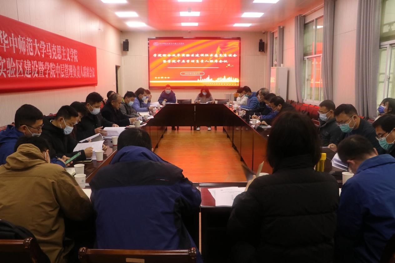 马克思主义学院讯(通讯员 赵 婷 张志庭;摄影 皮久驰)3月21日,华中师范大学马克思主义学院综合改革实验区建设征求意见座谈会暨学院中层管理负责人联席会议在一号楼三楼学术报告厅顺利召开。学院党委书记孙永祥、院长万美容、正处职组织员董俊敏、党委副书记邵莉莉、副院长毛华兵、副院长邵彦涛,学院各教研部部长、系主任,教工党支部书记、校级以上研究基地负责人、院办主任、党办主任、团委书记等学院中层管理骨干参加会议。会议由万美容主持。