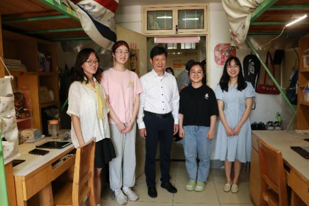 赵凌云书记一行先后来到元宝山本科生宿舍和东区研究生宿舍,与同学们亲切交谈,深入了解同学们的论文进度和学业情况,关心同学们的工作落实情况和未来发展规划,并对即将走向工作岗位的毕业生们予以嘱咐。