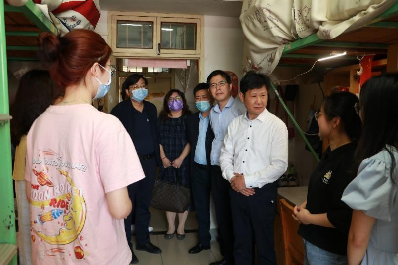 在本科生寝室,赵凌云书记亲切询问:“疫情防控、校园封闭的管理大家有没有什么建议或要求?平时生活学习方不方便?工作落实了吗?”深入了解毕业年级学生们在生活、学习、就业等方面的现状和需求,为学生们的毕业论文和就业情况答疑解惑,传达了学校领导和老师对同学们的关心和关爱。在研究生宿舍,赵凌云书记向同学们介绍了当前全国疫情防控的严峻形势,希望同学们理解并自觉遵守学校疫情防控管理规定,在做好疫情防控的同时积极参与学校组织的各项活动,并就同学们对于学校防疫工作的支持和配合表示感谢。赵凌云书记叮嘱同学们加强体育锻炼,涵养良好心态,做好防护工作;并鼓励同学们明确未来规划,提高抗压能力,积极主动就业。