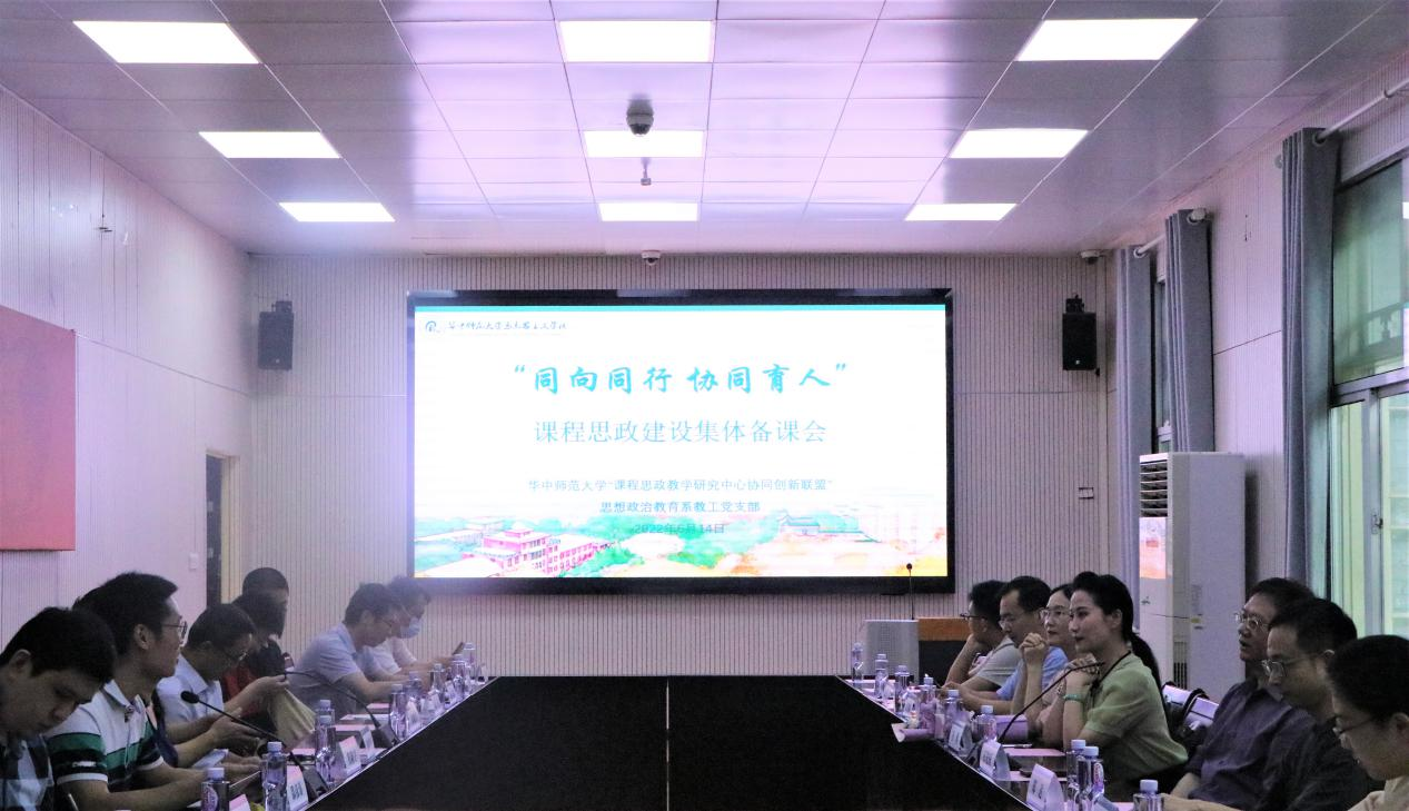马克思主义学院讯(通讯员 赵婷;摄影 张志庭)为全面贯彻落实全国高校思想政治工作会议精神,深入推动习近平新时代中国特色社会主义思想进教材进课堂进头脑,积极推进我校课程思政建设,“课程思政教学研究中心协同创新联盟” 于6月14日下午举办第一期“同向同行,协同育人——课程思政建设集体备课会”。这次集体备课会由我院和音乐学院、体育学院、美术学院、法学院联合承办,并邀请华中科技大学《课程思政教学研究》副主编程新宇教授、我校社会学院副院长徐晓军教授和我院秦在东教授作为点评专家出席,美术学院郑达副院长、法学院肖登辉副院长、《教师教育论坛》编辑部周文鼎主任以及法学院、美术学院、马克思主义学院20多名教师代表参加会议,集体备课会由邵彦涛副院长主持。