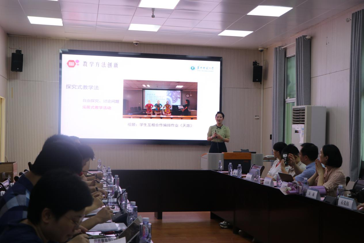 会议伊始,音乐学院的万莉老师、体育学院的李红艳老师、马克思主义学院的邵彦涛老师和法学院的石先钰老师分别分享了各自在课程思政教学中的经验。万莉老师以《歌声里的中国故事》为题,从课程建设规划、教学内容设计与实施、思政理念融合、教学方法创新和育人成效及示范推广价值五个方面分享了声乐课课程思政的教学经验。她认为,专业课教师要善于将百年党史和红色音乐结合起来,通过歌曲传达精神力量,激发学生情感共鸣,促进声乐学习,加强对学生的思想政治教育。