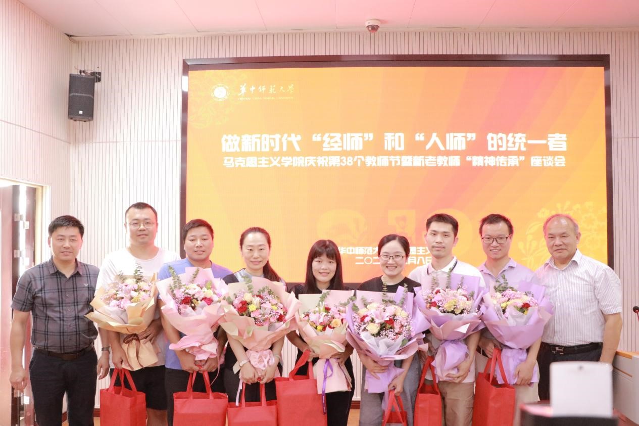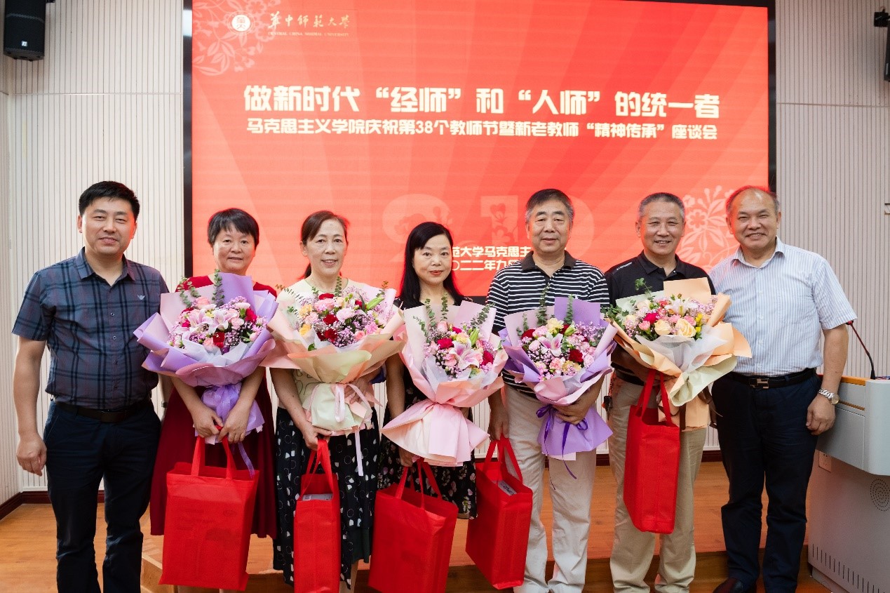 学院党委书记孙永祥在致辞中指出,一代又一代华师“马院人”致力于立德树人,铸就了老一代人的传奇,我们应该传承马院人精神,做新时代“经师”和“人师”的统一者。他梳理了习近平总书记关于教师的重要论述,强调马院教师特殊而神圣的使命,号召马院人要传承好学院悠久的传统和厚重的历史,发挥好在推进国家哲学社会科学发展中的标杆和示范作用,希望更好发挥老教师“传、帮、带”的作用,更好地培养青年教师的教学、科研能力,为建设一支符合党和国家要求、能够承担起一流学科建设和重点马克思主义学院建设的师资团队的目标不懈奋斗。