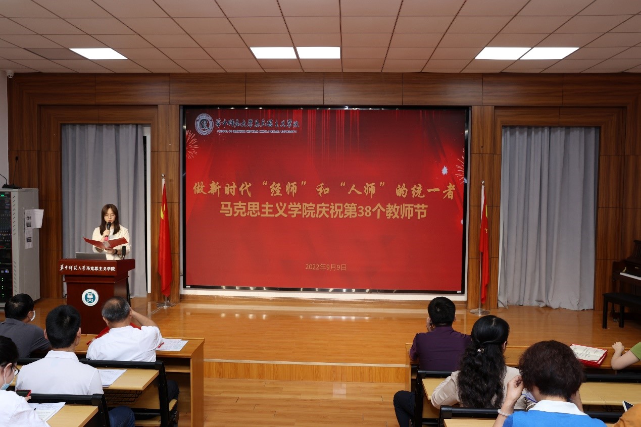 又讯:(通讯员 邹彤彤;摄影 许静)9月9日下午,“做新时代‘经师’和‘人师’的统一者——马克思主义学院庆祝第38个教师节” 【第二篇章】活动在1101报告厅举行,马克思主义学院全体教职工参加。学院本科生史可佳同学主持庆祝活动。
