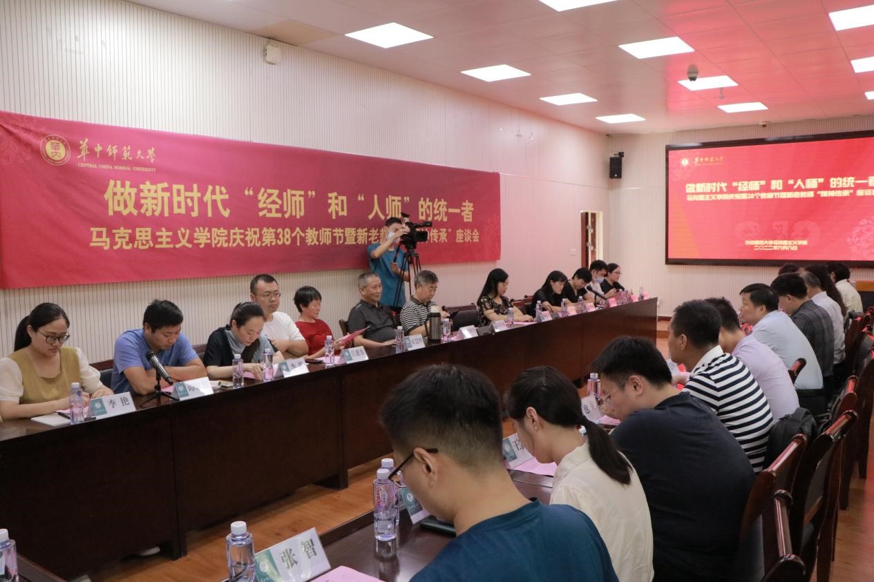 马克思主义学院讯(通讯员 吴宇凡;摄影 皮久驰)9月8日,华中师范大学马克思主义学院庆祝第38个教师节暨新老教师“精神传承”座谈会在一号楼三楼学术报告厅召开。我院2019年以来新入职教师、2019年以来荣休教师、学生代表以及学院党政联席会议成员出席本次会议。座谈会由正处职组织员董俊敏主持。