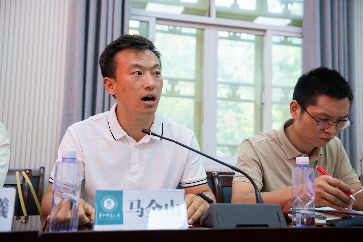 在与会教师交流发言环节,新进教师结合自身工作实际,畅谈在学院教学、研究时的所思所想,交流个人成长经历,就“做新时代‘经师’和‘人师’的统一者”这一主题发表自己的看法,并从教育教学改革、一流学科建设等方面提出了建议,现场气氛热烈。