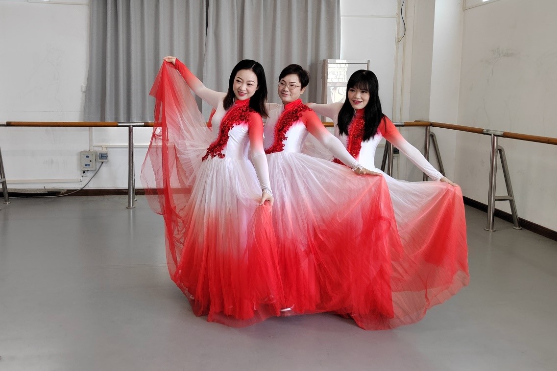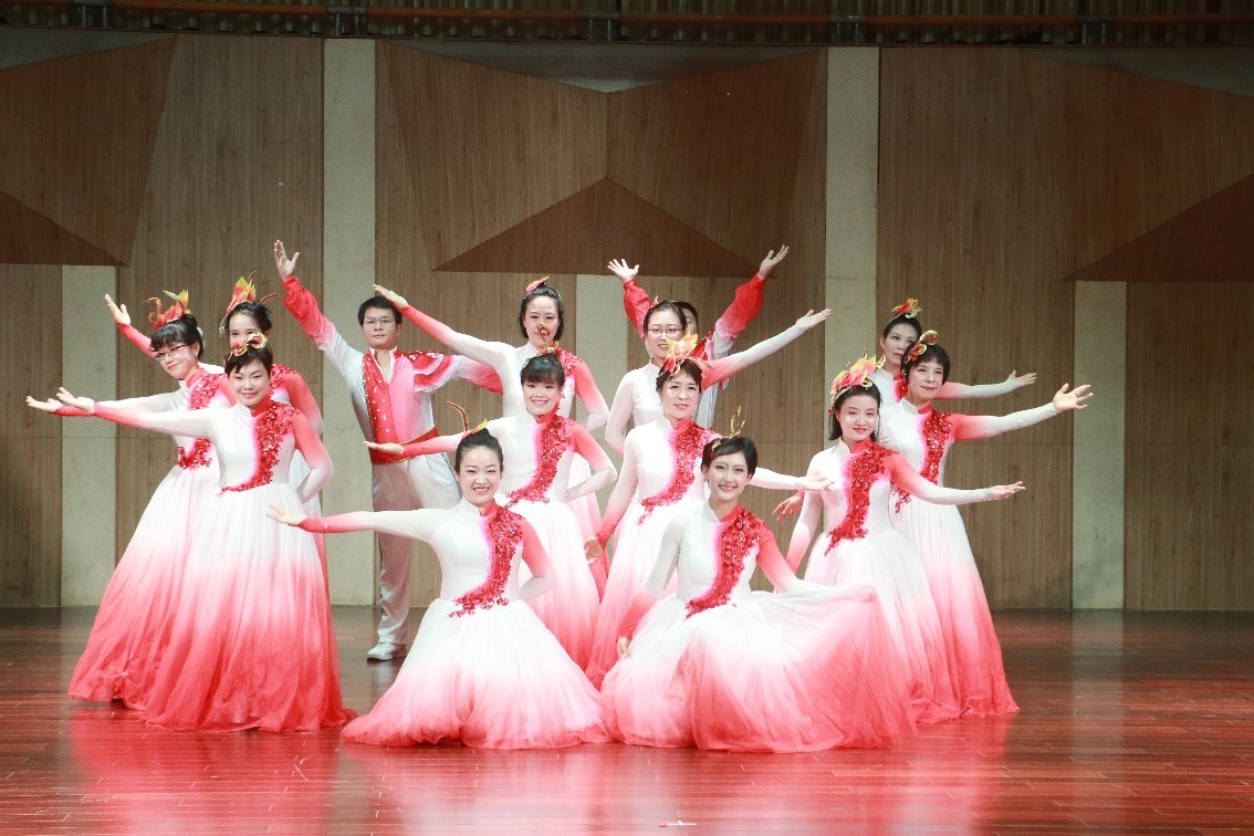 在演出过程中,老师们一袭红裙翩翩入场,伴着悠扬的音乐,舒展臂膀,舞步轻盈灵巧,动作轻捷,裙裾飘飞。两位男老师也毫不逊色,他们的舞蹈为这场表演增添了力量感。老师们灿烂的笑容、饱满的精神面貌感染着每一位观众。最后,老师们组成一朵热烈盛放的花朵,在优美的乐曲中“摇曳生姿”。舞毕,现场响起热烈的掌声。