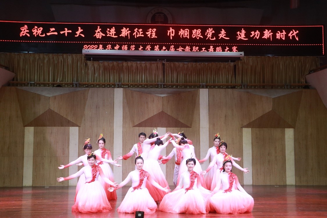 马克思主义学院讯(通讯员 王书苑;摄影 周莉莉 席雨欣 杜俏颐)金秋时节,叠翠流金。为丰富学校广大教职工业余生活,展现我校女教职工的风貌与活力, 提升教职工身体健康素质,喜迎120周年校庆,值此党的二十大召开之际,校工会于10月22日在音乐学院音乐厅举办了“喜迎二十大 奋进新征程 巾帼跟党走 建功新时代”暨华中师范大学第六届女教职工舞蹈大赛活动。华中师范大学党委副书记查道林、武汉东湖学院工会主席马宏燕出席了本次比赛。