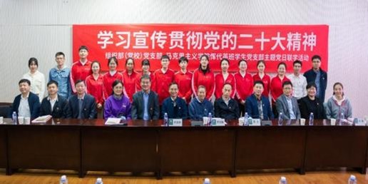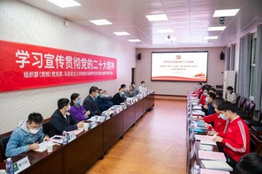 组织部 (党校) 党支部书记、党委组织部常务副部长郭方结合本次主题党日联学活动的主题,剖析了学习、宣传、贯彻党的二十大精神的逻辑关系,他希望两个党支部的党员同志们要进一步加强学习,做到融会贯通。学生党员要发挥专业优势,积极参与到党的二十大精神的理论宣讲的队伍中来,在学生中发挥示范 带动作用;教职工党员要立足岗位,把学习成果转化为工作成效。