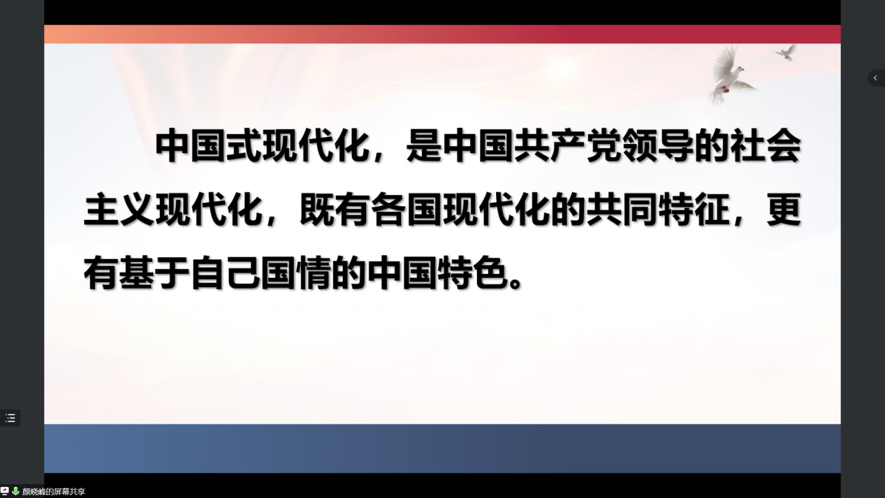 面对中国式现代化这一命题,颜晓峰教授强调,中国式现代化必须是具有中国自身特色的现代化,要从“西方的现代化”“其他社会主义国家的现代化”“其他发展中国家的现代化”这三个维度进行区分比较,要深刻理解党的领导这一中国式现代化最本质的特征。同时,要深入理解中国式现代化的本质要求,必须始终坚持全面建设社会主义现代化国家的重大原则。此外,颜教授也对全面建设社会主义现代化国家的战略布局进行展望,从党的中心任务、中国式现代化理论创新、第二个百年奋斗目标等七方面分享了自身体悟。