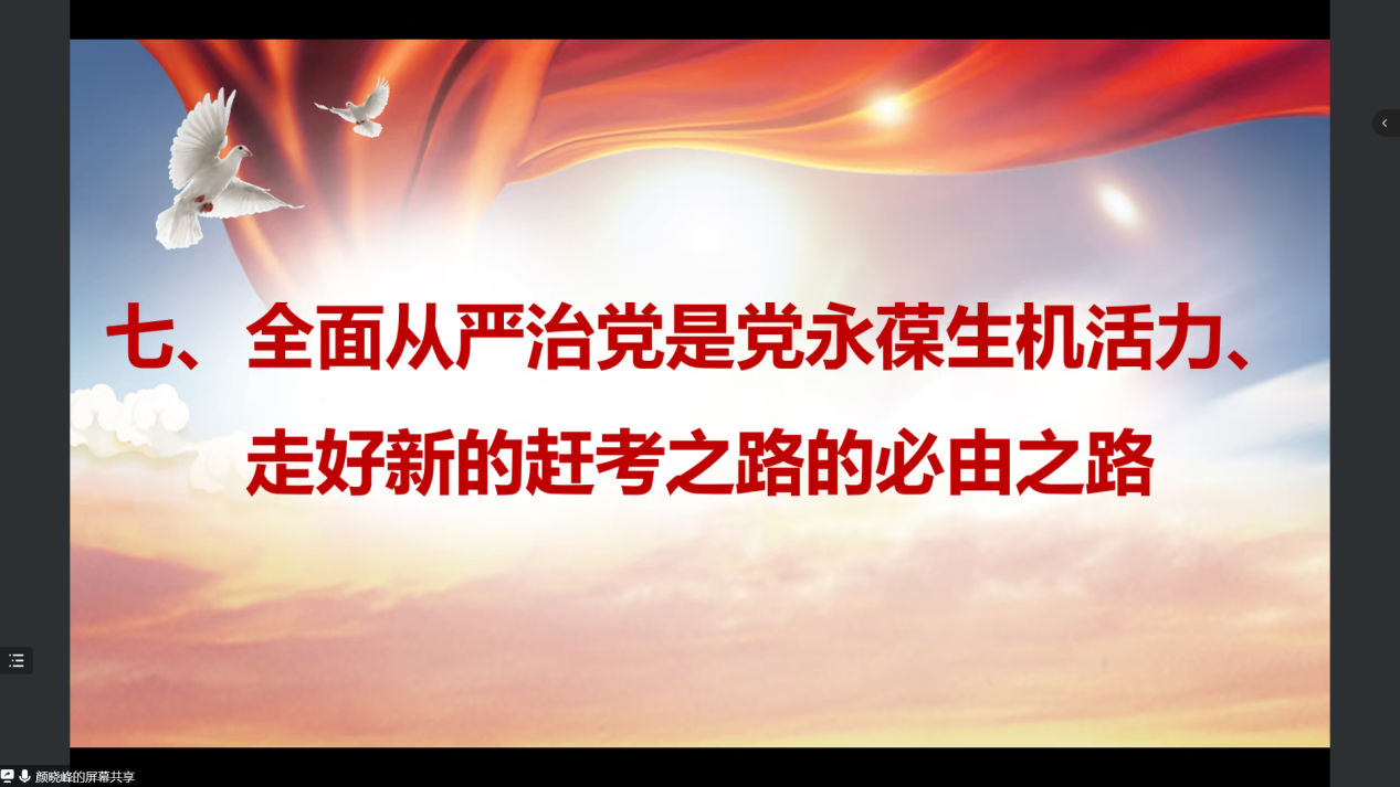 最后,颜教授从全面从严治党、解决大党独有难题、坚持自我革命这三个层面进行解读。他提出,保持党的生机活力、走好新的赶考之路,要始终坚持马克思主义的权力观,要始终坚持马克思主义执政党的利益观,要始终坚持中国共产党人的初心使命,要始终坚持勇于自我革命的坚定意志,确保党始终成为中国特色社会主义事业的坚强领导核心,确保党的长期执政。