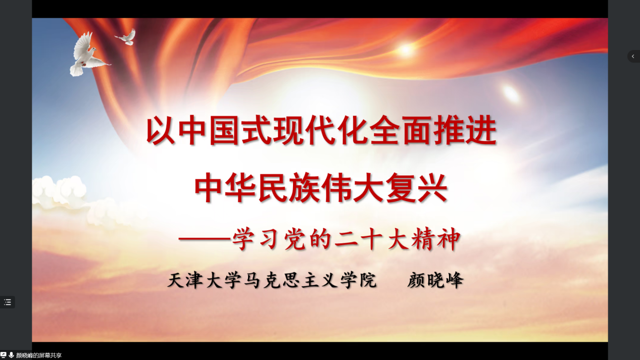马克思主义学院讯(通讯员 岳曈昕)为学习宣传贯彻党的二十大精神,深刻领悟中国式现代化的重要意义,12月3日,华中师范大学马克思主义学院举办“以中国式现代化全面推进中华民族伟大复兴”报告会。天津大学马克思主义学院院长颜晓峰教授,以《以中国式现代化全面推进中华民族伟大复兴》为题作报告。活动由郭明飞教授主持,我院六十余名研究生线上参会。