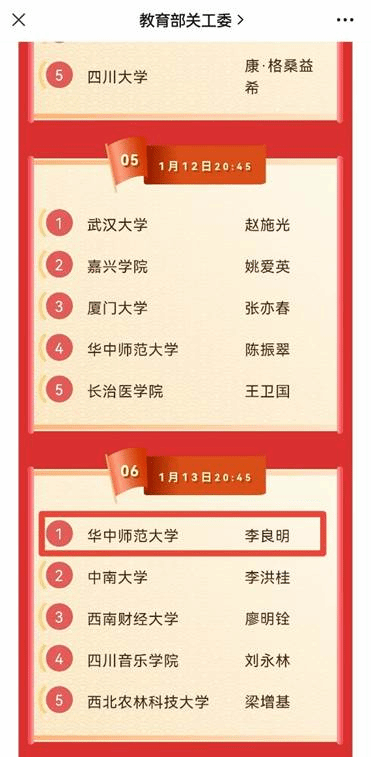 李良明教授微视频作品将于2023年1月13日20:45在中国教育电视台一套(CETV1)播放(教育部关工委微信公众号、中国大学生在线全媒体平台同步推送)。欢迎广大师生、校友积极收看,认真学习!
