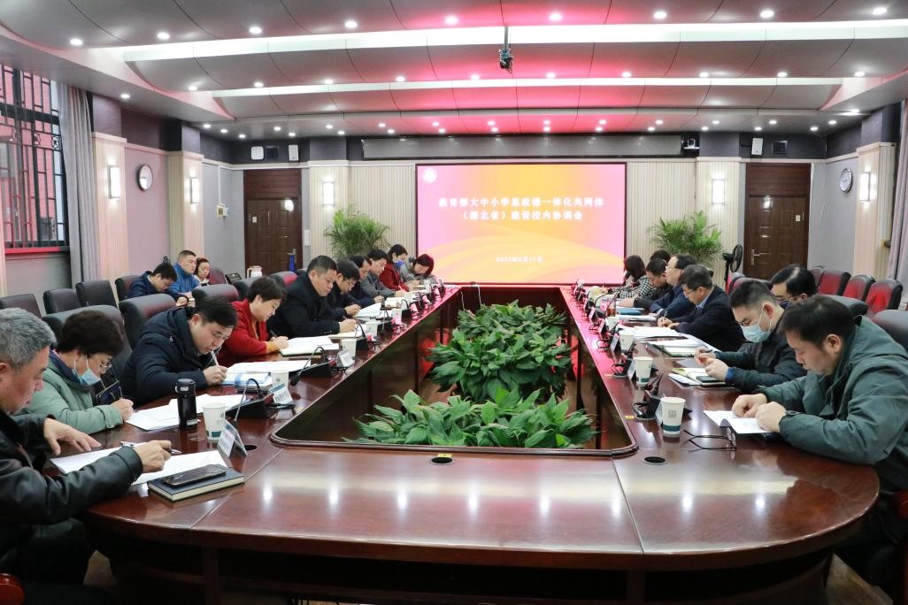 马克思主义学院讯(通讯员 甘文轩;摄影 赵婷)2月17日,教育部大中小学思政课一体化共同体(湖北省)建设校内协调会在我校行政楼一楼会议室举行。校党委书记夏立新、副校长彭双阶,学校办、宣传部、本科生院、研究生院、社科处、科技处、国内合作与培训管理处、培训中心、校友办、人工智能教育学部、教师教育学院、教育学院、信息化与基础教育均衡发展省部共建协同创新中心以及马克思主义学院负责人等参加会议。会议由副校长彭双阶主持。