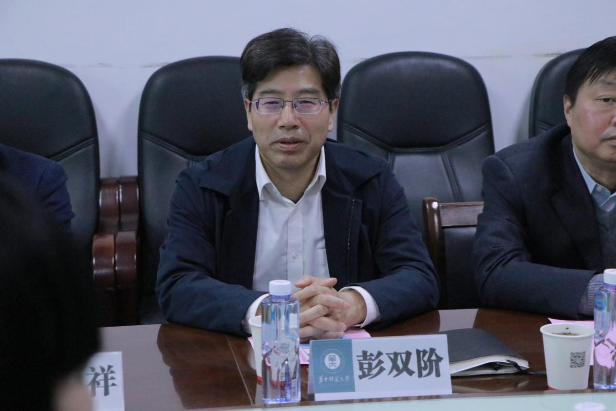 彭双阶首先致辞。他对一行来访表示热烈欢迎,并就学校和马克思主义学院基本情况进行了介绍,围绕学校思政课建设情况进行了重点介绍。