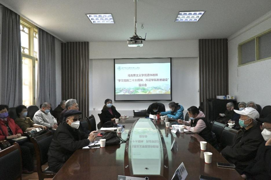 马克思主义学院讯(通讯员 廖一帆;摄影 何慕恬)3月27日,马克思主义学院退休教师“学习党的二十大精神,共话学院发展建设”座谈会在一号楼二楼会议室顺利举行,学院党委书记孙永祥、党委副书记邵莉莉、学院老协分会会长刘宗武、副会长李世林,退休教师党支部书记魏启华以及学院共计32位退休教师参与本次会议。会议由学院老协分会会长刘宗武教授主持。