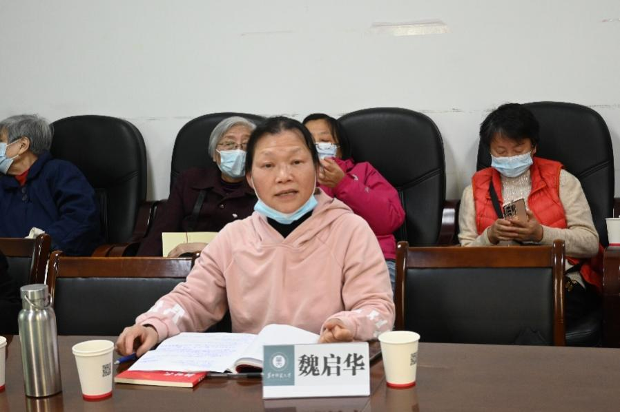 退休教师党支部书记魏启华着重介绍了支部工作,一方面,她表示支部组织退休教师学习成果显著,积极自主地学习党的二十大精神,配合完成上传下达的工作;另一方面,支部配合老协组织、开展各项工作,以多种形式看望、慰问老同志,践行为老服务的各项要求。