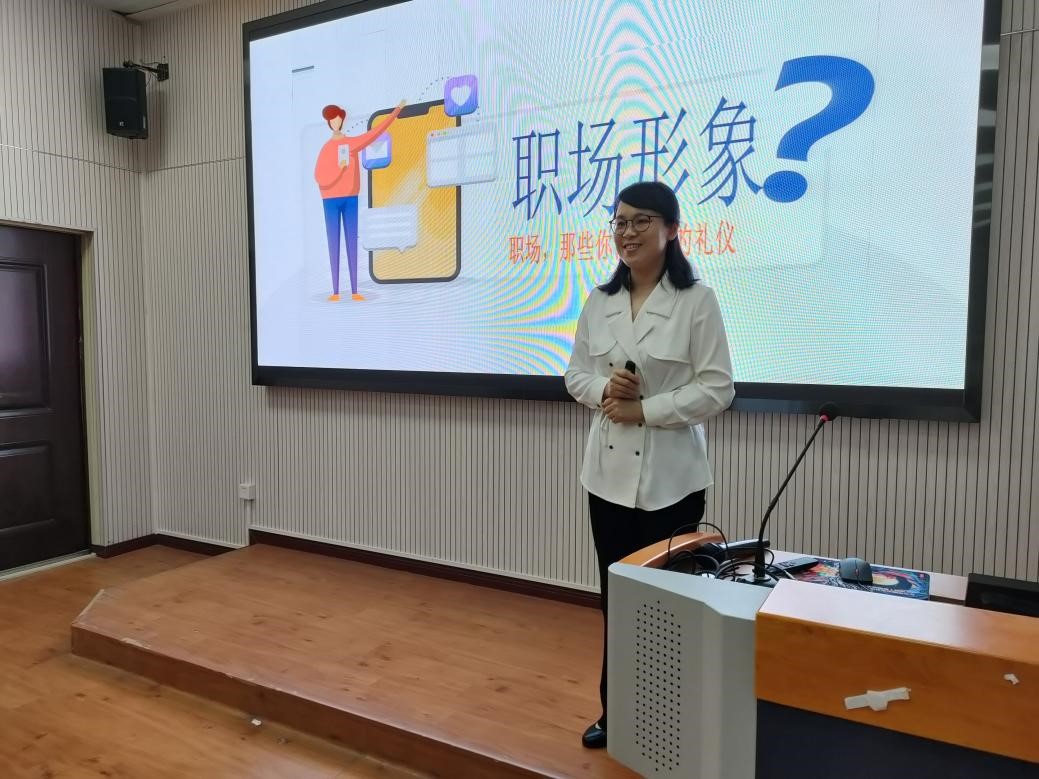 讲座伊始,李老师围绕职场、形象和礼仪的内涵,强调形象和礼仪在职场中的重要作用:良好的第一印象是在面试的短时间内得到认可的重要因素,得体的言行举止能在职场中达到敬人、律己的效果。为了让在场师生直观感受出色面试者的表现力,李老师播放热门综艺中表现出众、给面试官留下深刻印象的应聘者的面试片段。