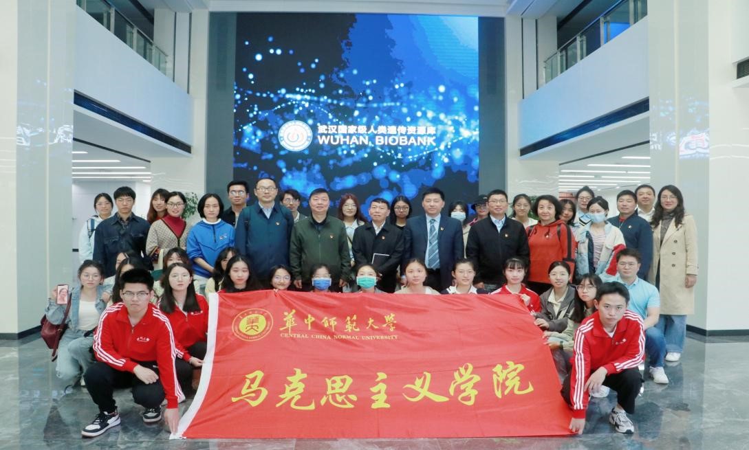 马克思主义学院讯(通讯员 雷绍佶;摄影 廖一帆)4月28日,“校企联动,结对共建”党建实践基地揭牌暨华中师范大学马克思主义学院访企拓岗特色党日在武汉 .光谷生物城举行。马克思主义学院党委书记孙永祥、学院正处职组织员董俊敏、思想道德与法治教硏部党支部书记徐秉国、毛泽东思想和中国特色社会主义制度体系概论教研部党支部书记周莉莉、教研部部长熊富标以及党支部部分教师党员代表、硕士研究生党史综合第一党支部、恽代英班学生党支部、本科生党支部、习近平新时代中国特色社会主义思想学生研习社等共同参与了此次活动。中共武汉国家生物产业基地综合党委常务副书记李敦强、生物城党建专家工作室带头人、湖北中信仁和科技集团党委书记张仲杰等领导出席活动并热烈欢迎我院师生的到访。