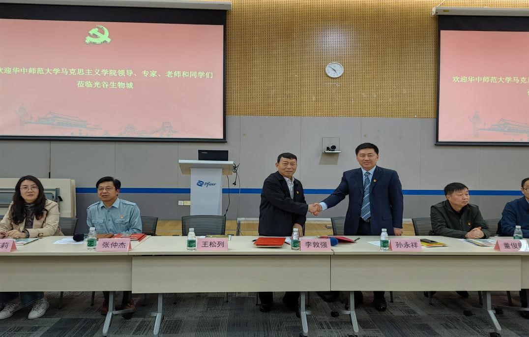 马克思主义学院党委书记孙永祥讲话指出,中部要崛起、武汉要发展,离不开产业的发展。光谷生物城在产业发展中具有独特地位,光谷生物城综合党委的工作至关重要。他表示,光谷生物城综合党委的工作坚强有力,服务赢得认可;创新有力,发展赢得认可;情怀深厚,情感赢得认可。他希望进一步推进校企联动,邀请光谷生物城专家到校讲党课、讲科技,组织马院师生走进企业开展实践,加强双方交流合作,联合开展党建专题的项目研究,搭建新型发展平台。同时,为学生了解武汉.光谷生物城搭建平台,为毕业生到武汉.光谷生物城就业创造更多机会。
