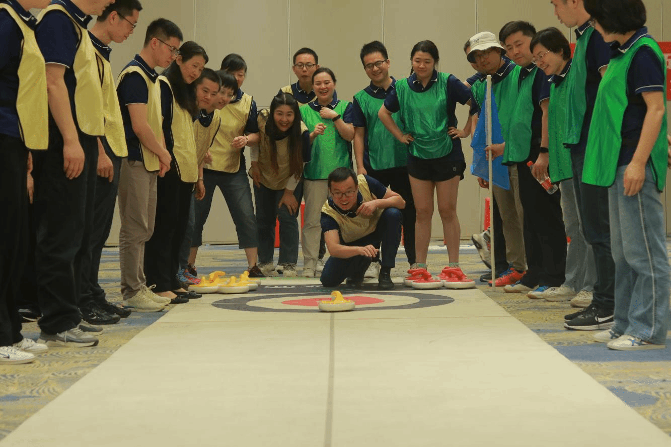 热身后,教职工分为四组进行团队比赛。首先是考验记忆力与默契值的“青蛙跳水扑通”游戏项目,每个队伍都谨慎思考,反应迅速,认准到底“跳水”几次;“旱地冰壶”项目,充分体现了马院教职工的风采与奋发向上的体育竞技精神,大家齐心协力,商讨战略战术,努力得分,分享喜悦;“飞盘来袭”考验大家的速度与配合,以小组为单位完成四个目标的飞盘任务,将飞盘飞入指定的区域内,完成挑战。在比赛的间隙,教职工欢声笑语,相互鼓励,展现出马院教职工的团体凝聚力与向心力。