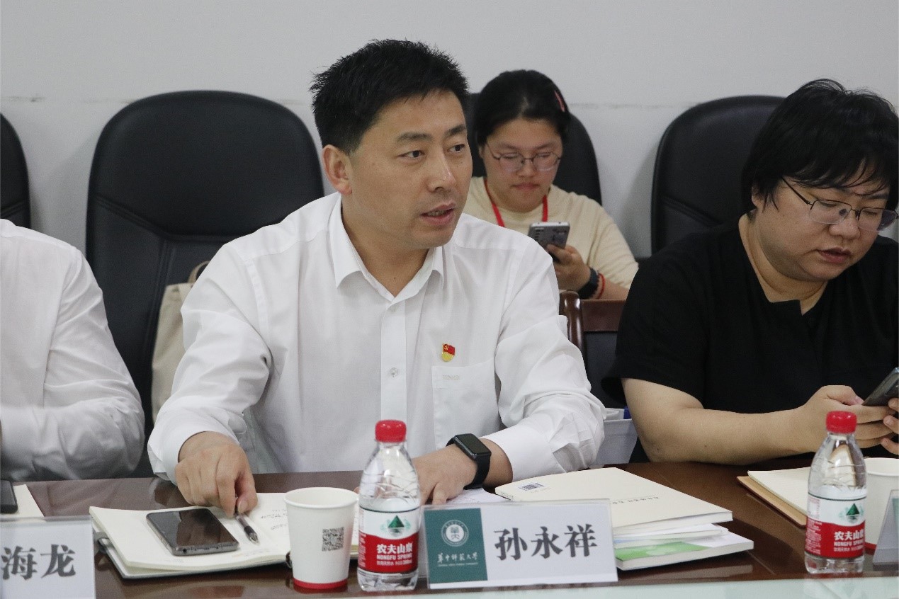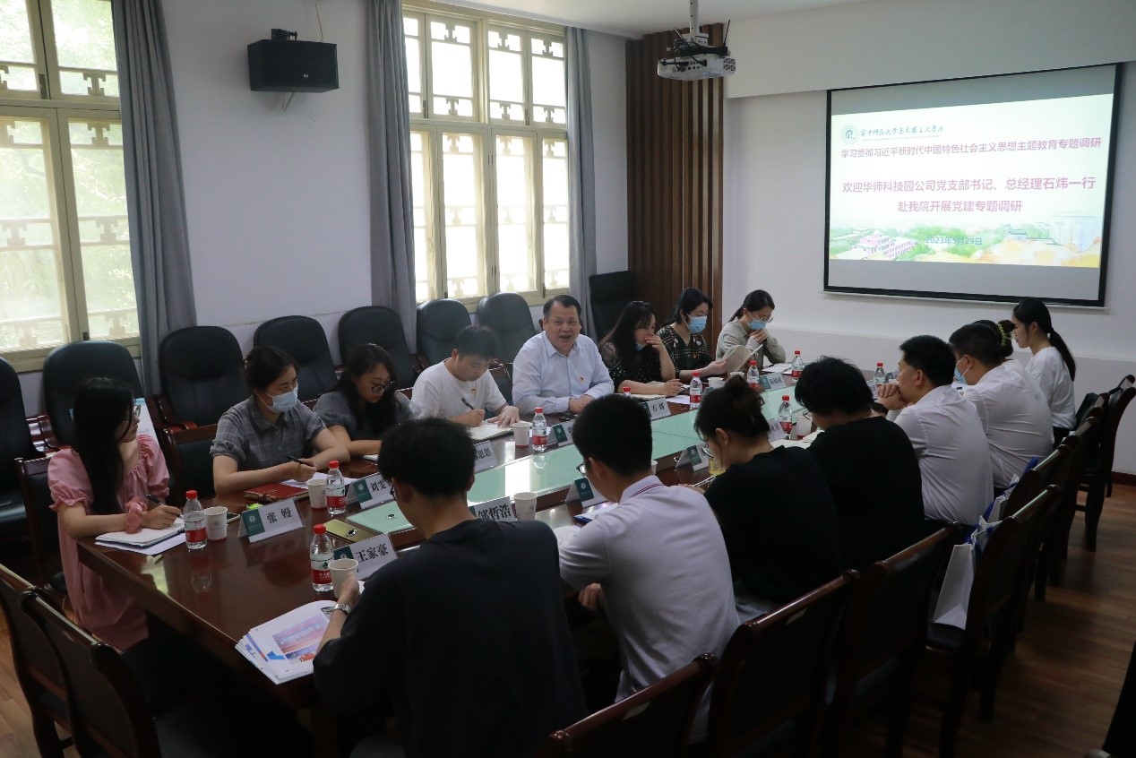 孙永祥对华师科技园公司一行来访表示热烈欢迎,并结合本次专题调研主题,从党建工作、主题教育、人才培养等方面出发,重点介绍了献礼建党百年舞台展演、《你好,恽代英》沉浸式舞台剧、《你还记得吗》沉浸式大思政课等特色党建活动策划经验。