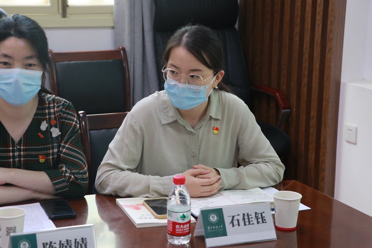 石炜结合华师科技园公司宣传视频对公司情况做了简要介绍,围绕公司所获成就、党建引领创新的模式、创新创业项目孵化等工作进行了分享,并就党建怎样更好引领创新创业和人才培养、如何打造大型沉浸式特色党建活动、活动如何实现常态化长效化等困惑问题进行了交流,希望能够获取更多马克思主义学院的宝贵经验。