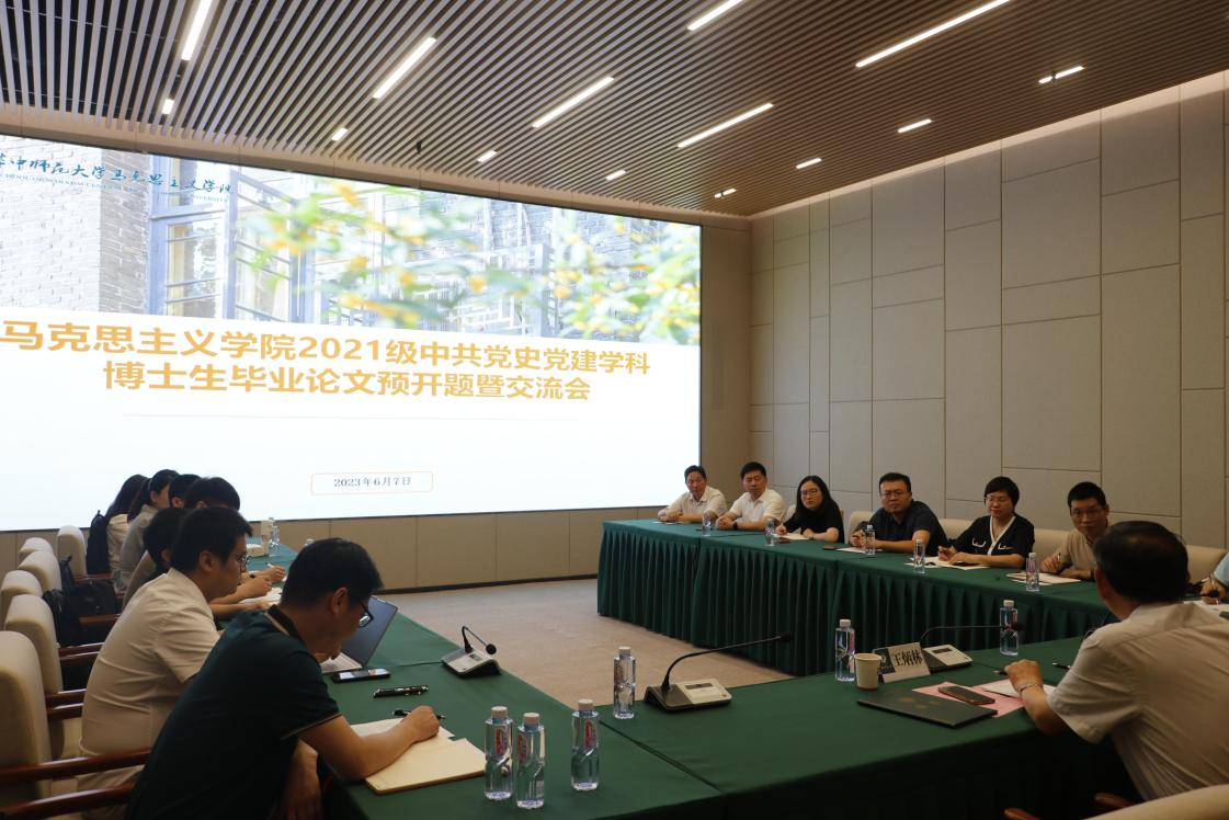 马克思主义学院讯(通讯员 甘文轩;摄影 许静)6月7日,马克思主义学院2021级中共党史党建学科博士生毕业论文预开题暨交流会在学校博物馆一楼会议室召开。本次会议特邀北京师范大学中共党史党建研究院院长、华中师范大学特聘教授王炳林担任主评议人。华中师范大学马克思主义学院中共党史党建学科方向教师团队代表孙永祥书记、钟德涛教授、邵彦涛副院长、张安教授、吕惠东副教授、曾银慧副教授、黄雪丽老师等以及2021级中共党史党建学科博士研究生参加本次会议。会议由马克思主义学院张安教授、博导主持。