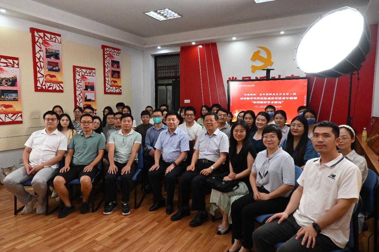 马克思主义学院一贯重视青年教师的培养和成长,沿袭优良传统继续开展“培根铸魂”青年教师成长沙龙活动,对接知名学者,为青年教师的成长构建良好的平台。“庄稼不收年年种,只问耕耘不问收获”,王炳林鼓励青年教师久久为功,默默耕耘、不懈努力,无论是在从事思政课教学工作还是论文写作、申请立项等科研工作,都保持热情和耐力,以坚定的理想信念、突出的问题意识,久久为功的毅力,积累经验,不断成长。孙永祥指出,王炳林围绕对话主题娓娓道来的讲述高屋建瓴、通透清晰、让人受益良多。最后,参会人员与对话嘉宾合影留念。