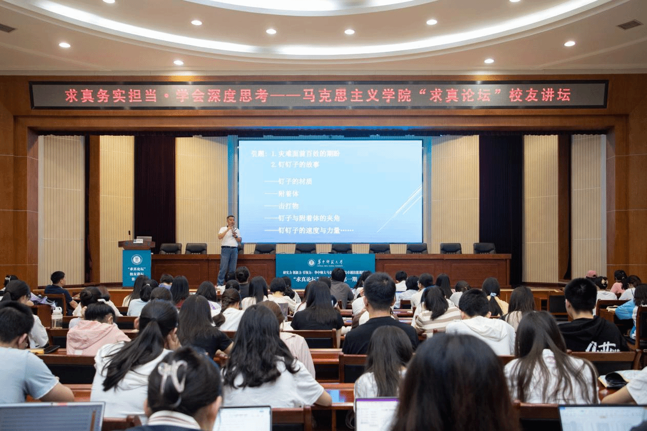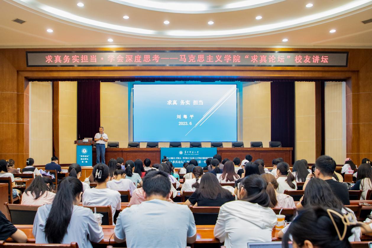 马克思主义学院讯(通讯员 肖书河;摄影 杜俏颐 陈希昌)6月27日上午,研究力、创新力、引领力——马克思主义学院卓越技能训练周举行,特邀请中网世纪教育科技(北京)有限公司投资人、中瑞酒店管理学院培训资深专家、华中师范大学马克思主义学院“香草绽放”奖励基金设立者、马克思主义学院育人导师、1980级校友刘粵平先生担任“求真论坛”主讲嘉宾,他以《求真 务实 担当——学会深度思考》为主题开启我院“校友讲坛第一期”报告会,马克思主义学院2020、2021、2022级本科生参加报告会。报告会由马克思主义学院党委书记孙永祥主持。
