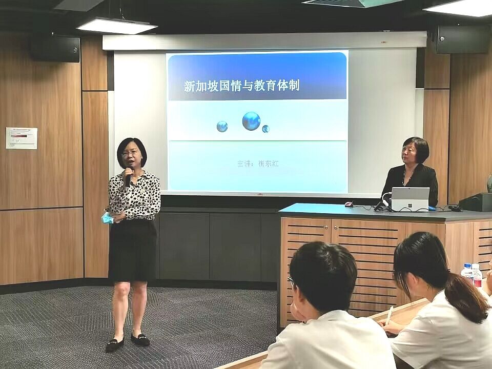 开营仪式由新加坡南洋理工大学科技创新中心副主任付晓芳主持,她对我方一行人的到来表示欢迎并从“快速学习、快速行动、快速融入”三方面对研学营成员提出要求和期待。开营仪式后,新加坡南洋理工大学特邀教授崔东红博士为研学营作“新加坡国情与教育体制”主题报告。崔东红围绕新加坡的国情概况、人才培养、国民服役制度等方面剖析了国家治理中前瞻思考、公民参与与科学管理的重要性。新加坡以“教育为本,精英治国”为基本国策,大力发展教育,开发人力资源,为国家注入强大的动力和活力,提高全球竞争力。