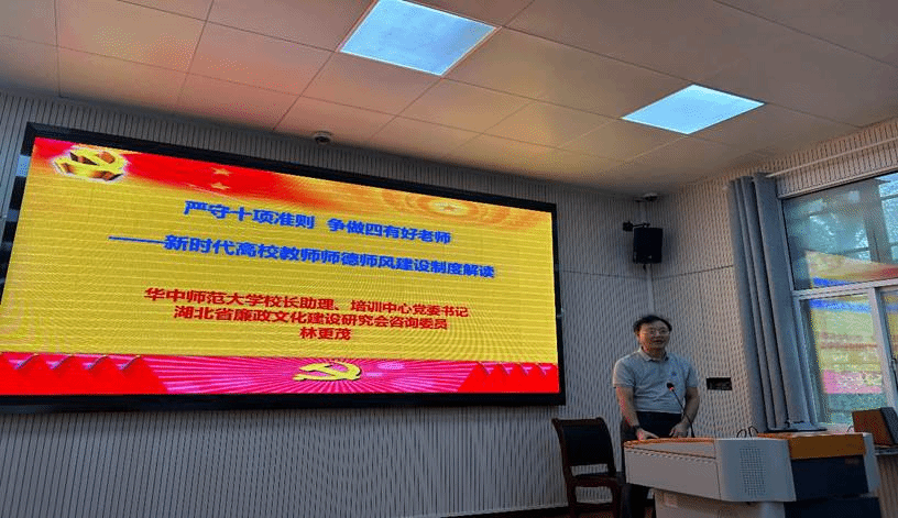 19日上午,华中师范大学校长助理、培训中心党委书记林更茂老师作了“严守十项准则 争做四有好老师”讲座,讲座深入浅出,案例真实丰富,予人警示,发人深省,让每一位参训学员深受教育。随后华中师范大学马克思主义学院副院长毛华兵教授作了“科研课题申报与论文写作技巧”讲座,讲座中,毛华兵教授结合自己多年来的课题研究经验,对申报课题和论文写作技巧等做了深入浅出、细致入微的讲解。