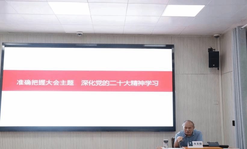 7月17日上午,暑期社会实践研修班开班仪式在华中师范大学马克思主义学院三楼学术报告厅举行,华中师范大学马克思主义学院院长万美容教授致欢迎词,并向旗手授班旗。浙江纺织服装职业技术学院党委委员、宣传部长夏朝丰教授对此次实践研修提出了相关要求。开班仪式后,万美容院长作了题为“准确把握大会主题,深化党的二十大精神学习”的报告,并针对参训青年教师成长需求解读了我院的申博政策。