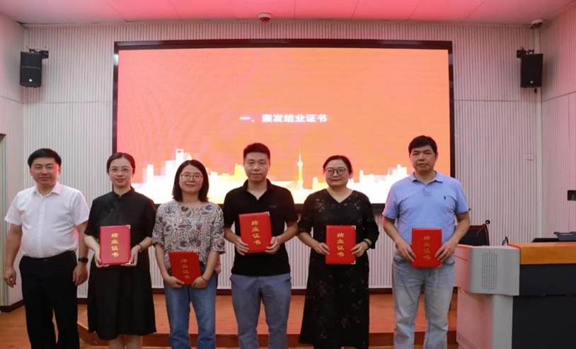 在结业仪式上,浙江纺织服装职业技术学院马克思主义学院孙翱翔、朱燕、刘欢欢三位老师分享了此次实践研修活动的收获,高度肯定了本次研修的组织工作,充分肯定了研修学习内容的科学安排。浙江纺织服装职业技术学院马克思主义学院院长林坚、华中师范大学马克思主义学院党委书记孙永祥分别作了总结讲话,并为参训的学员颁发了结业证书。