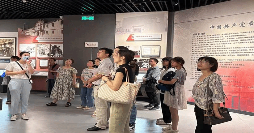 18日上午,参训学员来到武汉革命博物馆进行现场教学。教学点在武昌农讲所旧址纪念馆、武昌毛泽东旧居、中共五大会址纪念馆、武昌起义门旧址、中国共产党纪律建设历史陈列馆等场所展开,追寻革命烈士的脚步,用心聆听他们用热血和生命谱写的壮丽之歌。在浙江纺织服装职业技术学院马克思主义学院党支部书记林坚的带领下,参训全体党员教师在武昌农讲所旧址纪念馆前重温入党誓词。