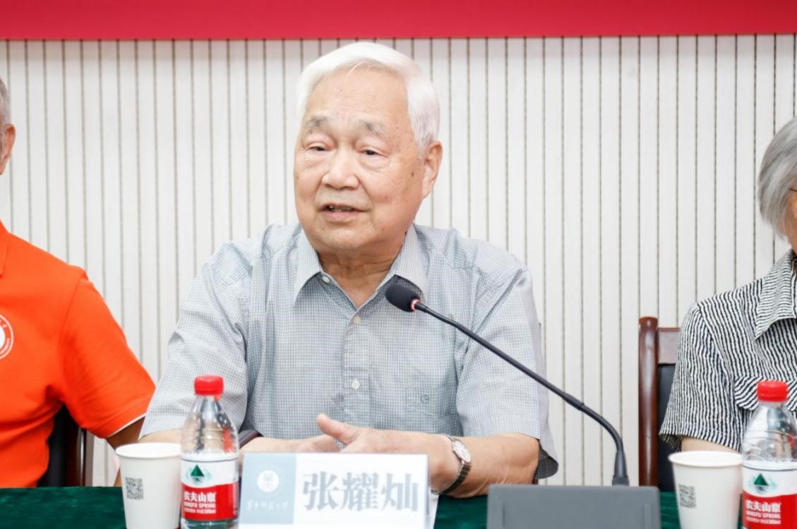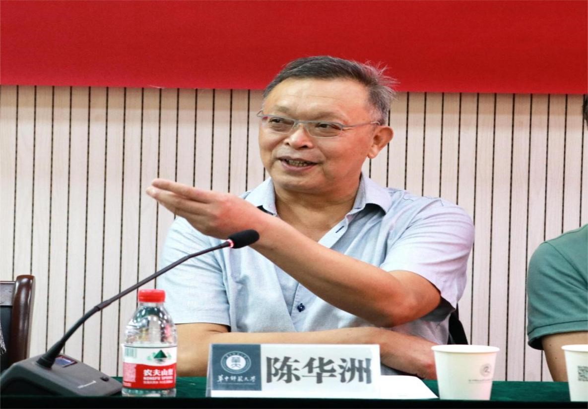 马克思主义学院荣休教师、60后陈华洲教授发言时站起来,向八旬老教授张耀灿、八旬老教授刘文君、七旬老教授李良明鞠躬致谢,感激教育培养之恩,深情回顾了三位老教授的对自己的教诲。并建议新入职老师做好“事实判断”“价值判断”和“行动判断”,树立政治意识、规矩意识、奉献意识。