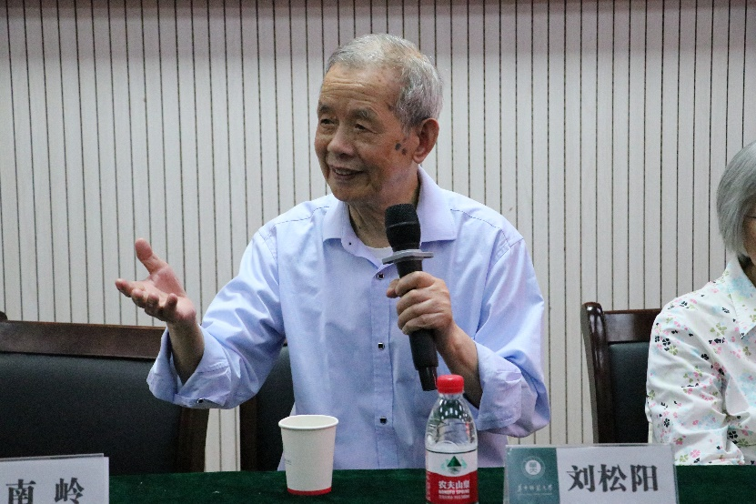 马克思主义学院老教师刘松阳教授回顾了与1979级同学们相处的时光,他着重强调,1979级校友是人才辈出的一个年级,是有希望的一个年级,是有着发展潜能的国家栋梁之材。刘松阳教授高度肯定了翁先定校友助力教育强国梦的善举,强调翁先定校友的捐赠对学校、学院具有里程碑的历史意义,他以各位校友为荣;其次,他就自身70年教学感悟语重心长地提醒1979级退休校友们转变关注点,以工作、教学为中心转移到关注身体健康,注意体育锻炼、均衡饮食,保持乐观心态,营造和谐的家庭氛围,为国家做更多贡献。