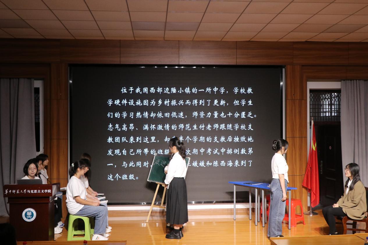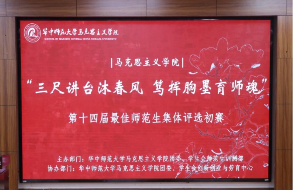 马克思主义学院讯(通讯员 秀迩娜;摄影 李语菲)10月15日,华中师范大学马克思主义学院第十四届最佳师范生集体评选初赛在一号楼1101教室举行。2022级本科生辅导员田聪娇,马克思主义学院团委、学生会执行主席周宗伟,学生团委副书记杨思琪、刘佳芳、皮久驰出席本次活动并担任评委。活动由师范生训测部成员麦思敏主持。