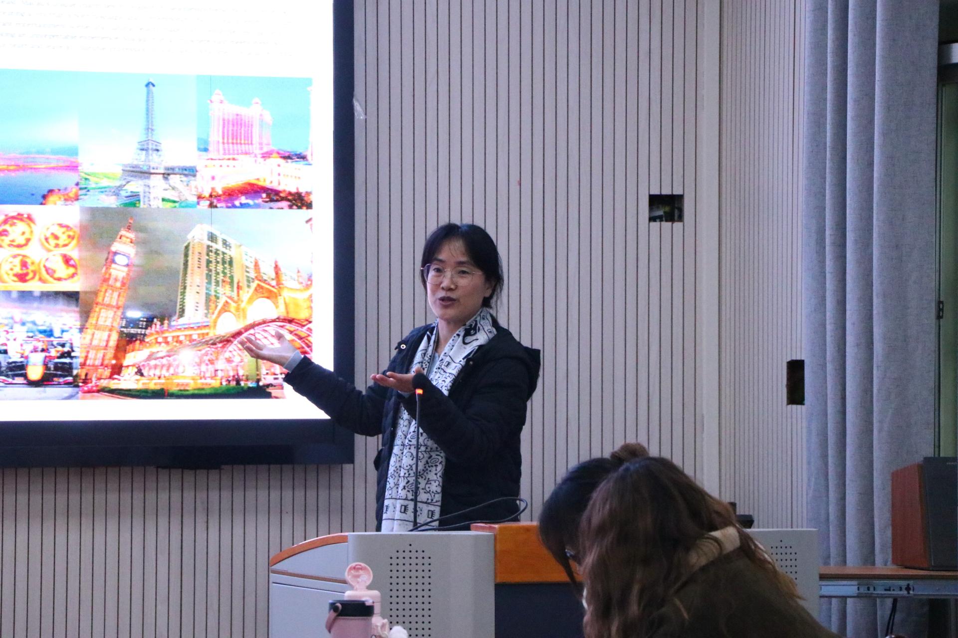 向宗平副教授的分享主题为《英语专业高级英语课程思政实践探索》。她以自己的教学课堂为例介绍了目前开展的课程思政学习活动,并指出,课程思政不仅要融入思政元素、探索可行模式,更要学生参与、体验、投入,在做中学、学中用,培养学生的国际视野、家国情怀、跨文化传播能力及教师身份意识。