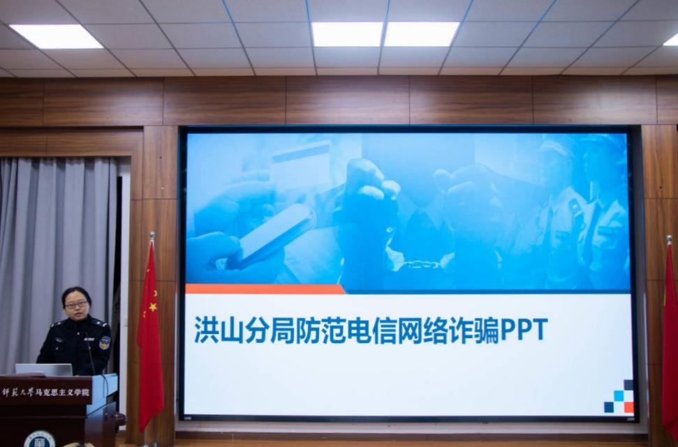 马克思主义学院讯(通讯员 卢思颖 吴林炽;摄影 李语菲)为培养马克思主义学院2023级学生防诈骗意识,筑牢反诈阵线,切实维护同学们的利益和财产安全,2023年11月19日晚,学院邀请马房山派出所民警刘文娟警官于一号楼1101教室为2023级学生做防范电信网络诈骗安全讲座,2023级全体同学共同参与。